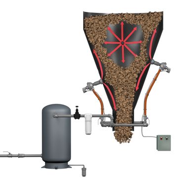 Los sistemas de activación de materiales Airsweep promueven el flujo de distintos materiales almacenados en tolvas o silos.